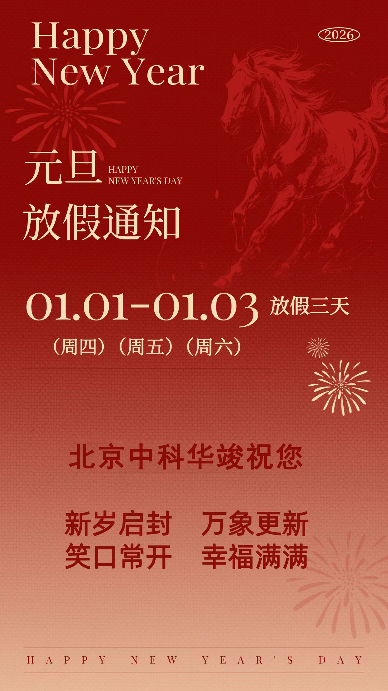 元旦放假通知— —中科华竣